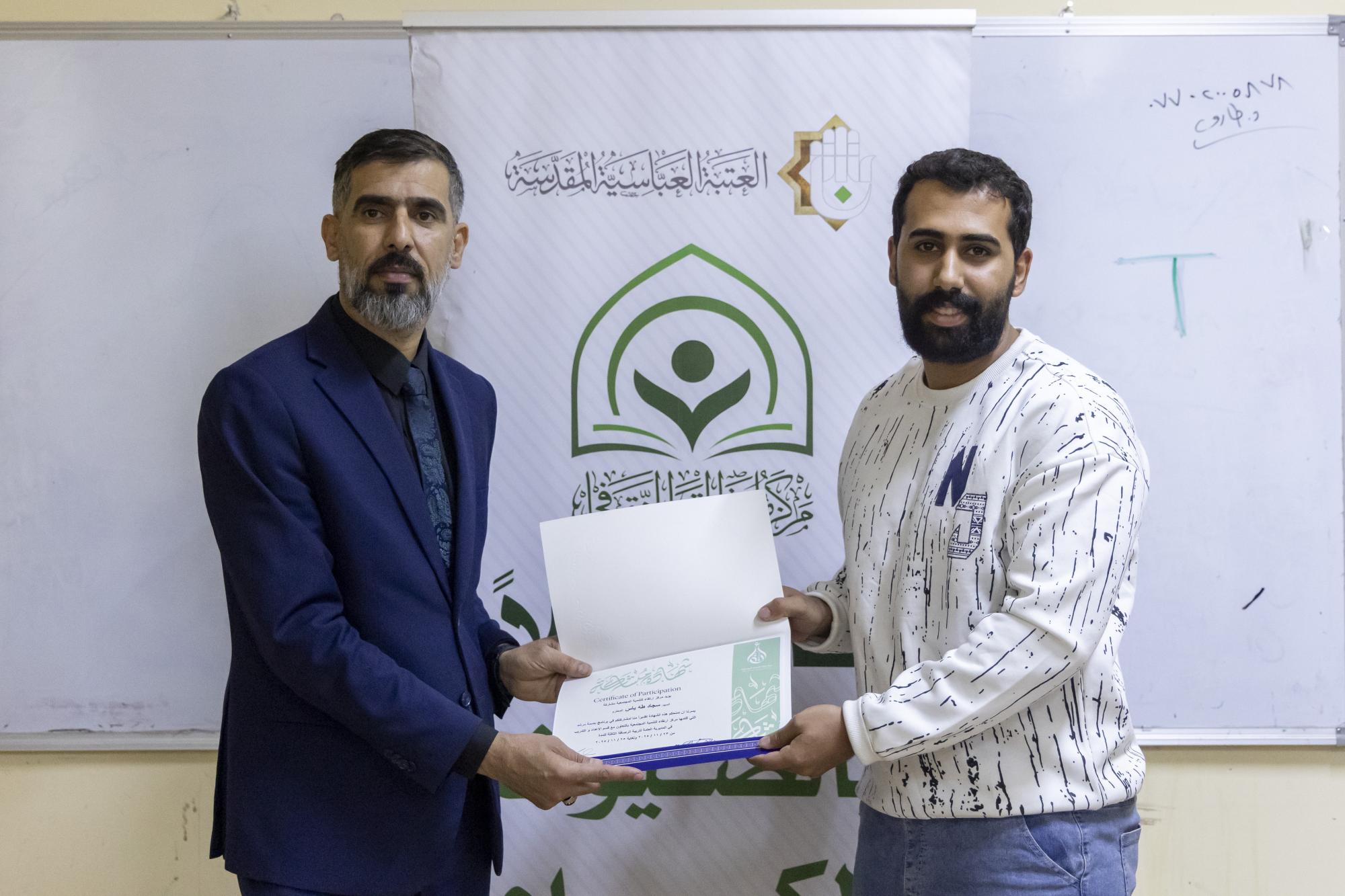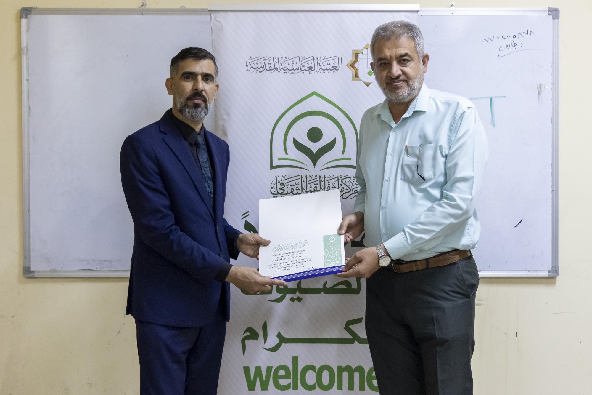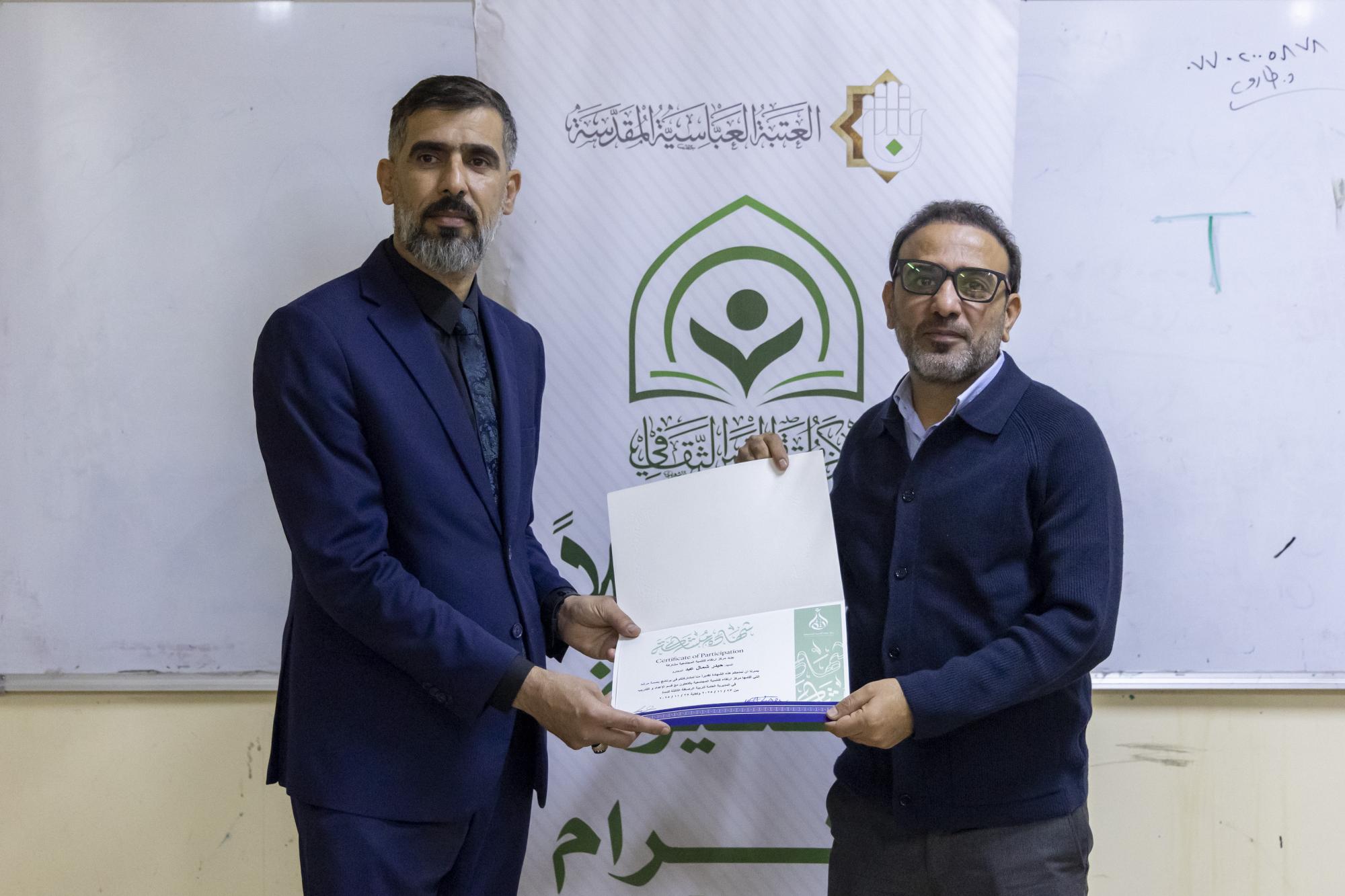 اختتم قسم الشؤون الفكرية والثقافية في العتبة العباسية المقدسة، برنامج (بصمة مرشد)، لتطوير الملاكات التربوية وتعزيز كفاءة الإرشاد المدرسي في مديرية تربية الرصافة الثالثة بالعاصمة بغداد. ونفّذ البرنامج مركز ملتقى القمر الثقافي التابع للقسم، بالتعاون مع مركز ارتقاء للتنمية المجتمعية، وبالتنسيق مع وزارة التربية العراقية. وقال مدير مركز القمر، الشيخ حارث الداحي: إنّ "المركز وانطلاقًا من حرصه على تطوير الملاكات التربوية وتعزيز كفاءة الإرشاد المدرسي، اختتم اليوم برنامج (بصمة مرشد) في مديرية تربية الرصافة الثالثة، الذي يهدف إلى تطوير قدرات أكثر من 1000 مدرّس ومرشد تربوي في العاصمة بغداد وتنمية مهاراتهم". وأضاف أنّ "البرنامج يسعى إلى تعزيز القيم التربوية والأخلاقية والسلوكية عند طلبة المدارس الثانوية؛ لكونهم صنّاع المستقبل كما تتمثّل أهداف البرنامج، في الارتقاء بواقع الإرشاد المدرسي ودعم البيئة التعليمية والنفسية داخل المدارس؛ لكون المرشد هو حلقة الوصل مع الطالب".