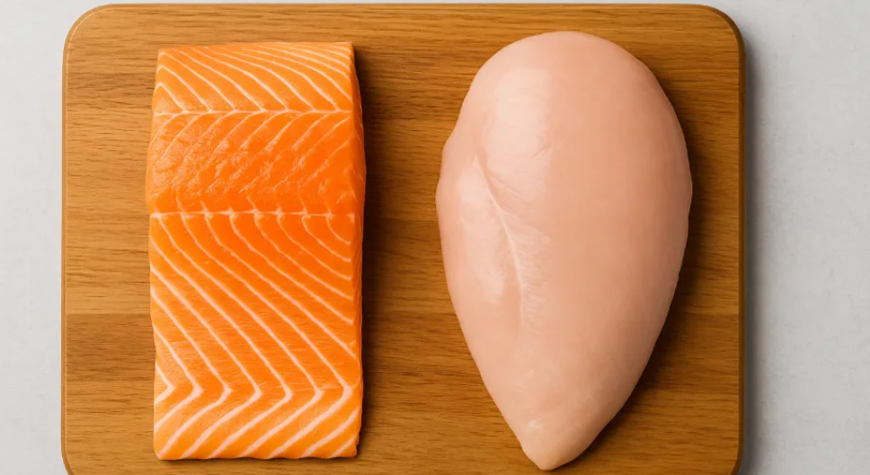 اختيار بين الدجاج والسلمون يعتمد على هدفك الصحي، لكن الجمع بينهما هو أفضل طريقة للحصول على أعلى فائدة غذائية.