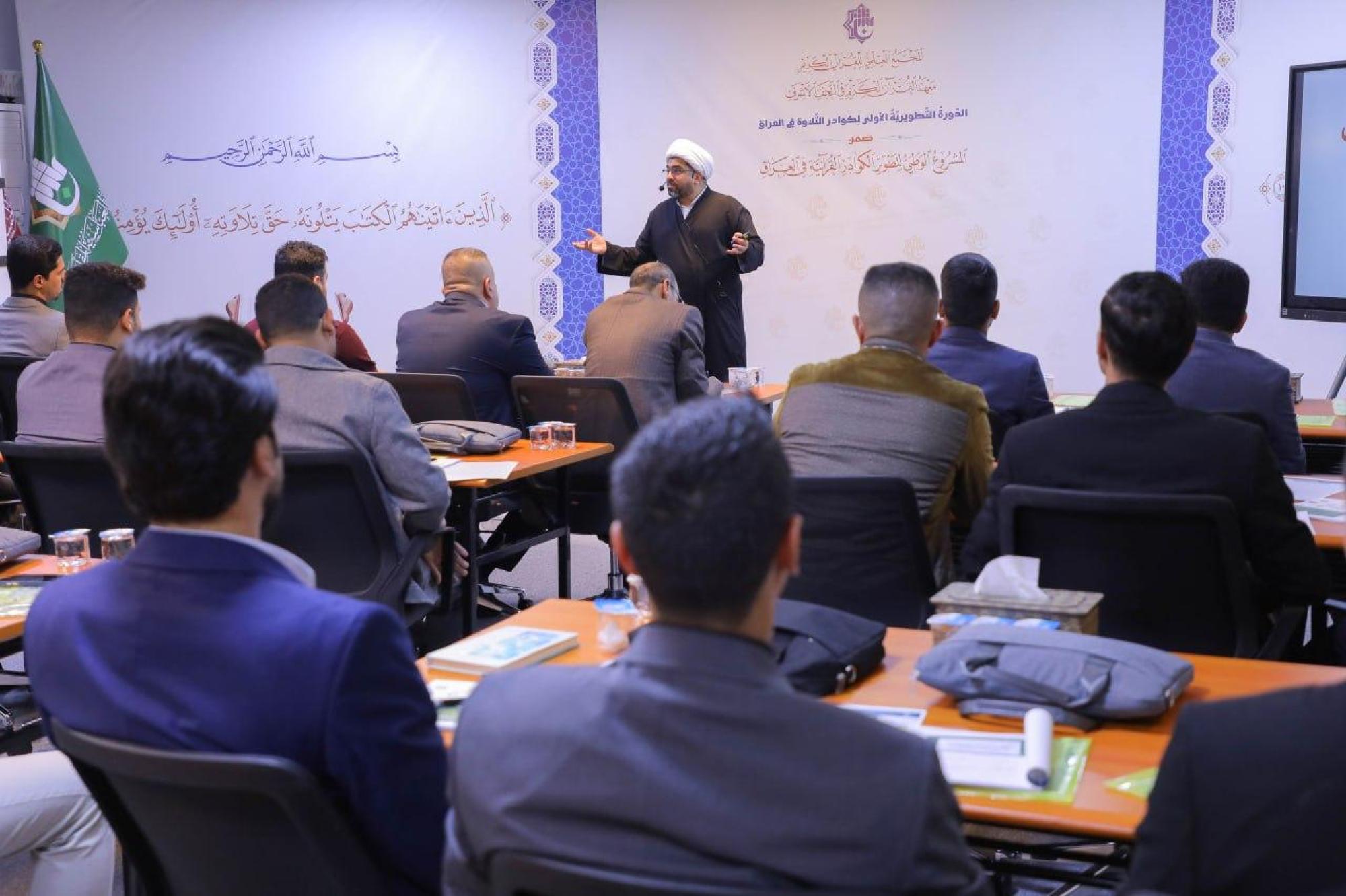 وقال مسؤول وحدة التلاوة في المعهد السيد محمد علي رشيد: إنَّ "المحاضرة الأولى في هذه الدورة، التي تستمر أربعة أيام، قدَّمها الشيخ بسيم الإدريسي بعنوان (الإدارة التسويقية للبرامج القرآنية)، وتطرَّق فيها إلى الآليات والوسائل الحديثة في الترويج للدورات والنشاطات القرآنيَّة داخل المجتمع". وبين أنَّ "الدورة موجَّهة للملاكات الإدارية القرآنيَّة المشرفة على تنظيم برامج التلاوة ونشاطاتها في تشكيلات المجمع العلمي والمؤسسات الأخرى، وتتضمن عددًا من المحاور المتعلقة بإدارة الدورات والتخطيط لها، وتسويقها، إلى جانب محاضرات توعوية يقدِّمها مجموعة من فضلاء الحوزة العلمية في النجف الأشرف، وبرامج دينية وترفيهية متنوعة". ويحرص المجمع العلمي على تطوير الوعي القرآني والفكري، وتطوير الطاقات القرآنية عبر تنظيم عددٍ من المشاريع الهادفة إلى نشر ثقافة كتاب الله العزيز في أوساط المجتمع.