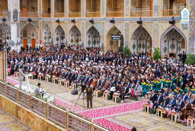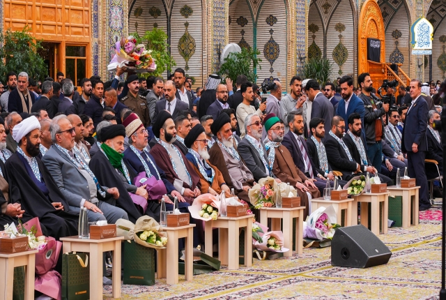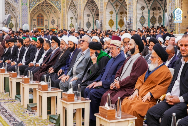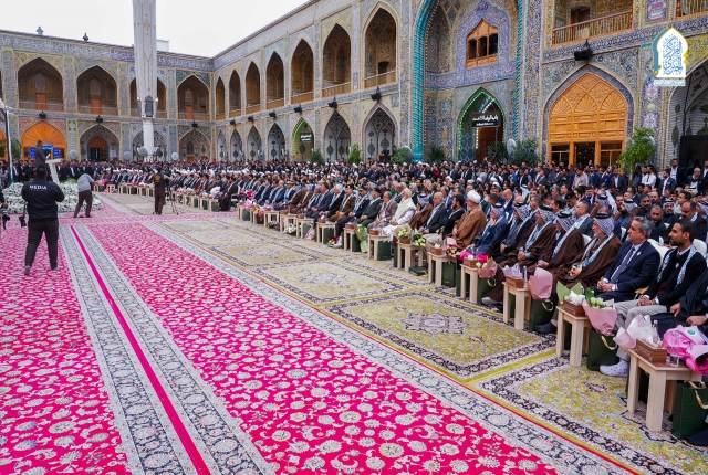 وجرى الحفل بحضور ممثلي المرجعية الدينية العُليا، وفضلاء الحوزة العلمية، ومسؤولي ديوان الوقف الشيعي، وممثلي العتبات المقدسة والمزارات الشريفة، إلى جانب مسؤولي الحكومة المحلية، وشخصيات أكاديمية وعشائرية، فضلاً عن جموع غفيرة من الزائرين.