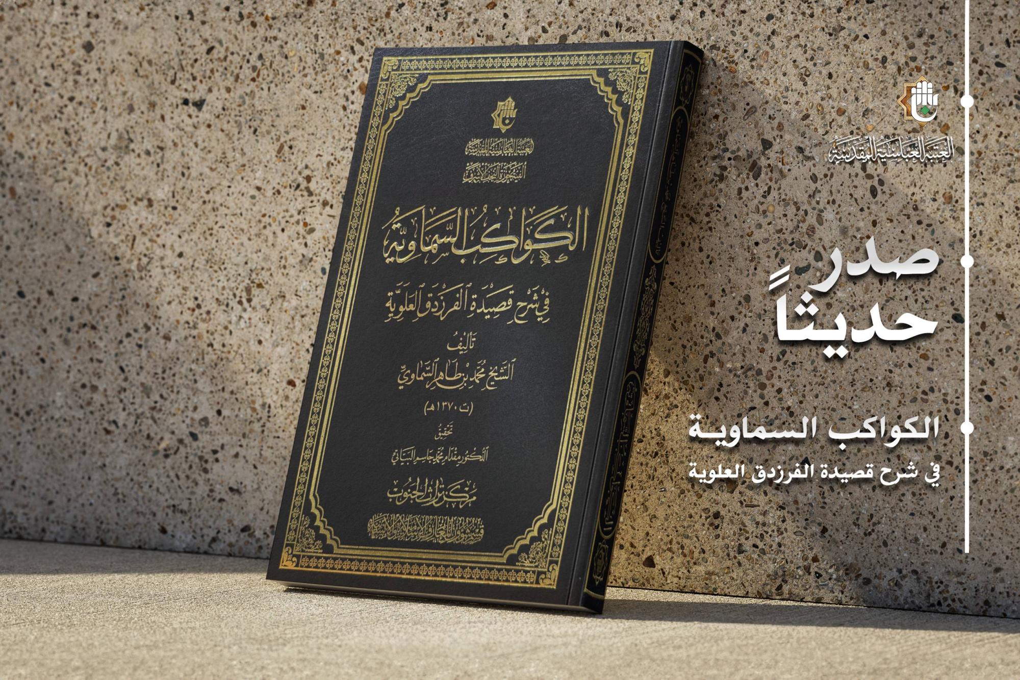 أصدر قسمُ شؤون المعارف الإسلامية والإنسانية في العتبة العبّاسية المقدّسة، كتاباً جديداً بعنوان: (الكواكب السماوية في شرح قصيدة الفرزدق العلوية). الكتاب من تأليف الشيخ محمد بن طاهر السماوي، وأشرف على تحقيقه وإصداره مركزُ تراث الجنوب التابع للقسم. ويُعدّ الكتاب من أبرز الشروح التي تناولت قصيدة الفرزدق الشهيرة في مدح الإمام زين العابدين علي بن الحسين(عليهما السلام)، لما تحمله من قيمةٍ أدبيّة وتاريخيّة عالية، موضّحاً أبعادها البلاغية والدلالية ويكشف عن سياقها الفكري والوجداني في التراث الإسلامي. واعتمد المحقّقون في إنجاز العمل منهجًا علميًا دقيقًا قام على مقابلة النسخ الخطّية المتوفّرة، وتوثيق النصّ توثيقًا علميًا مع إرفاق حواشي شارحة، استكملت الإشارات التاريخيّة واللغوية وأسهمت في توضيح المعاني وإزالة ما قد يعتريها من لبسٍ أو غموض.