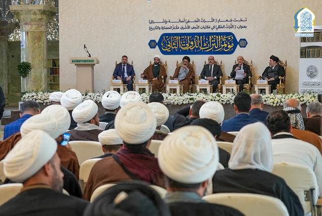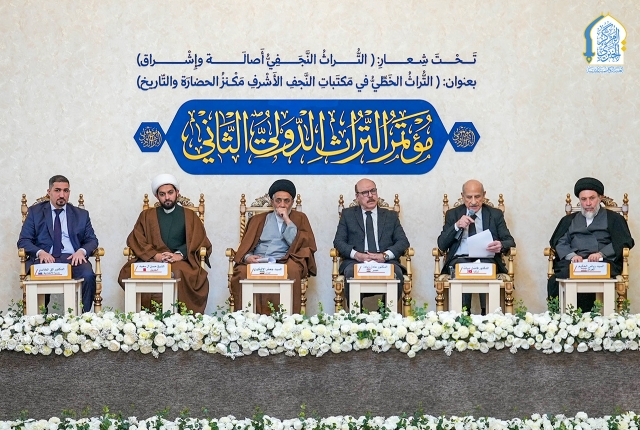 وشهدت الجلسة الافتتاحية للمؤتمر إلقاء عددٍ من الكلمات التي أكدت أهمية إحياء التراث النجفي وتسليط الضوء على كنوزه العلمية ومآثره الحضارية، ولا سيّما الخط النجفي والمخطوطات النادرة التي تزخر بها خزائن مكتبات النجف الأشرف.