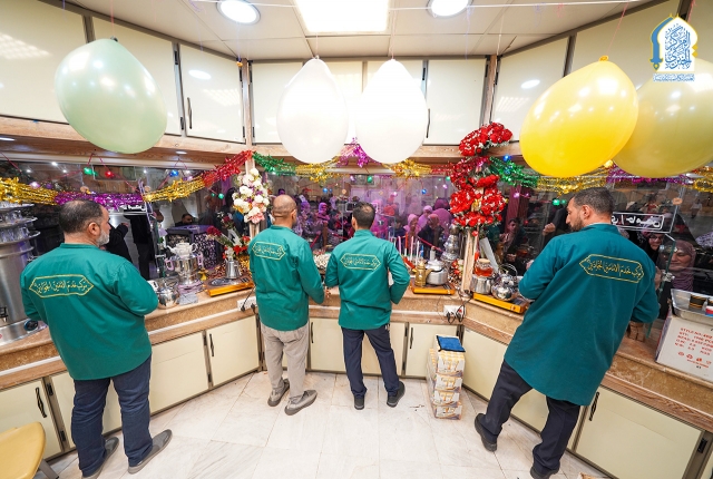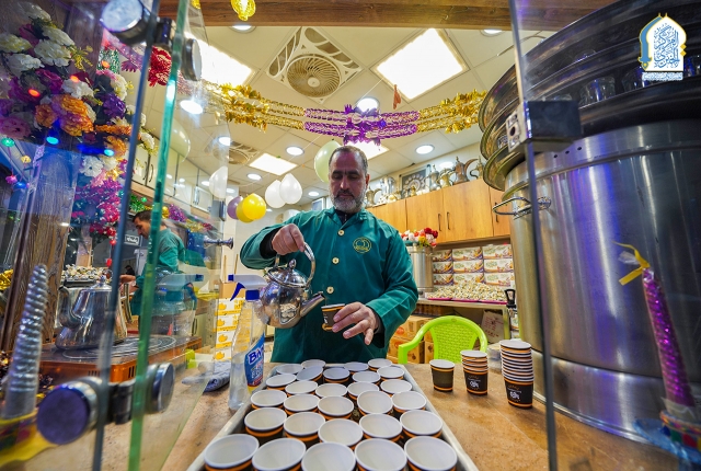 وفي هذه اللوحة الإيمانية البهيجة، امتدت أيادي الخدّام بالضيافة، تحمل أطباق الكرم وتسقي العابرين من كوثر العطاء، بروح ولائية، ونفوس تهفو إلى نيل شرف الخدمة عند أعتاب الإمامين الكاظمين الجوادين "عليهما السلام".