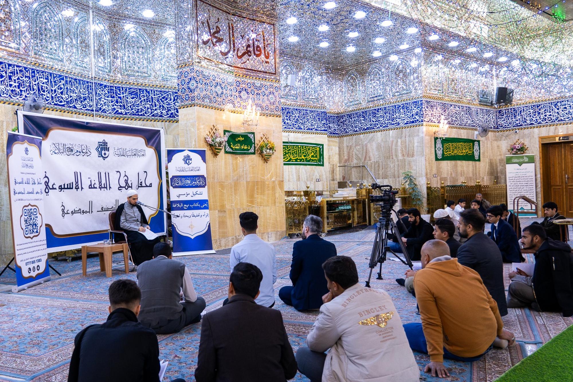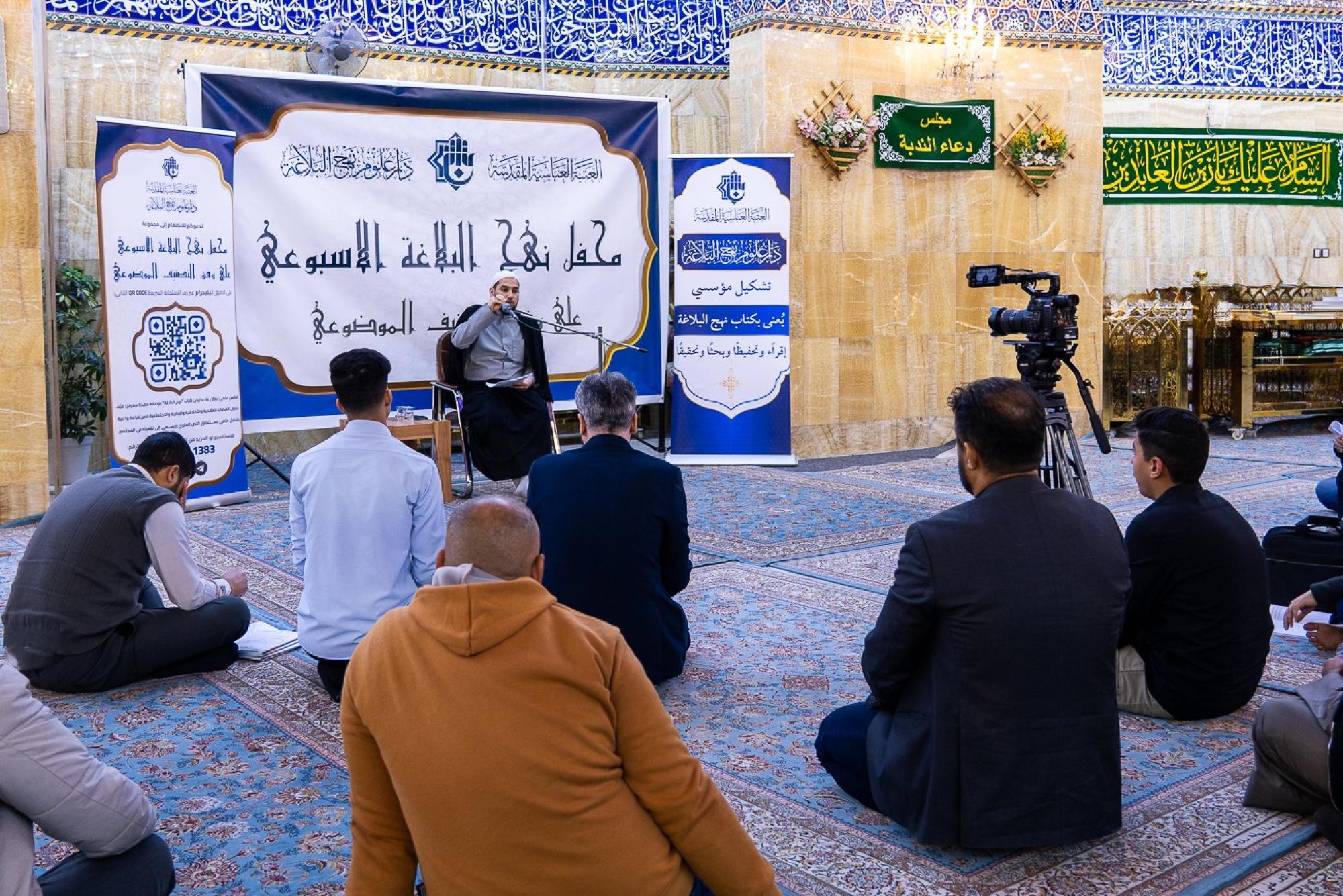 أقامت دار علوم نهج البلاغة في العتبة العباسية المقدسة المحاضرة السادسة من محفل نهج البلاغة الأسبوعي على وفق التصنيف الموضوعي، في مقام الإمام المهدي (عجّل الله فرجه). وقال رئيس الدار، الدكتور لواء العطية: إنّ "محفل نهج البلاغة الأسبوعي يسعى إلى إعادة قراءة نهج البلاغة قراءة علمية معمقة تستحضر أبعاده الفكرية والتربوية، وتبرز أثره في توجيه الإنسان ومعالجة التحديات الفكرية والأخلاقية في المجتمع". وأضاف، أنّ "المحاضرة السادسة جاءت بعنوان (الصراع بين العقل والشهوة)، مستلهمة مضامينها من كلام الإمام علي (عليه السلام)، الذي يدعو الإنسان إلى الالتزام بتعاليم الله تعالى بعد أن أقام الحجة على عباده، وبيّن لهم طريق الخير ".