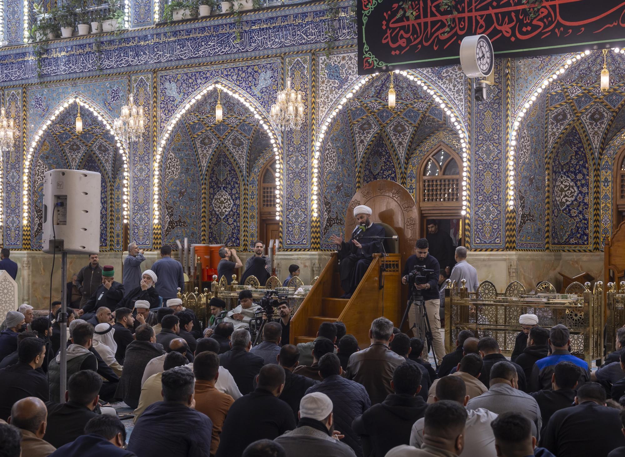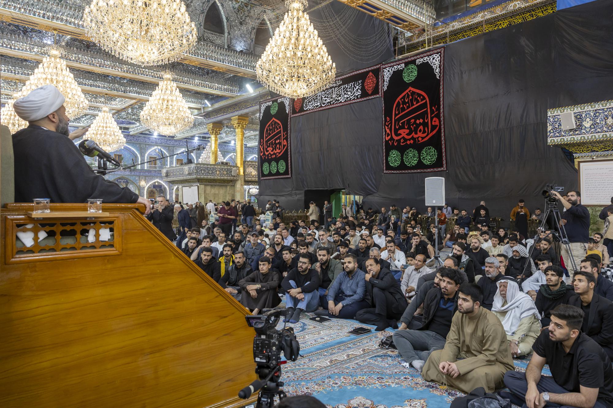 أقامت شعبةُ الخطابة للتبليغ الحسينيّ في العتبة العبّاسية المقدّسة، مجلس عزائها المسائيّ لإحياء ذكرى هدم قبور أئمّة البقيع(عليهم السلام). ونُظّم المجلسُ في صحن مرقد أبي الفضل العباس(عليه السلام)، بحضور عضو مجلس إدارة العتبة المقدّسة الدكتور أفضل الشامي وعددٍ من مسؤوليها، إلى جانب جمعٍ من الزائرين، ويستمرّ لثلاثة أيّام، متضمّناً فقرتين صباحية ومسائية. واستُهِلّ المجلسُ بتلاوة آياتٍ من الذكر الحكيم، أعقبتها محاضرةٌ دينية ألقاها الشيخ زمان الحسناوي، أكّد خلالها أن إقامة هذه المجالس تأتي تطبيقًا لمبدأ إحياء أمر أهل البيت(عليهم السلام). وتطرّق الحسناوي إلى مظلومية أئمّة البقيع الأربعة، الإمام الحسن المجتبى والإمام زين العابدين والإمام محمد الباقر والإمام جعفر الصادق(عليهم السلام)، ودورهم في نشر تعاليم الدين الإسلامي.