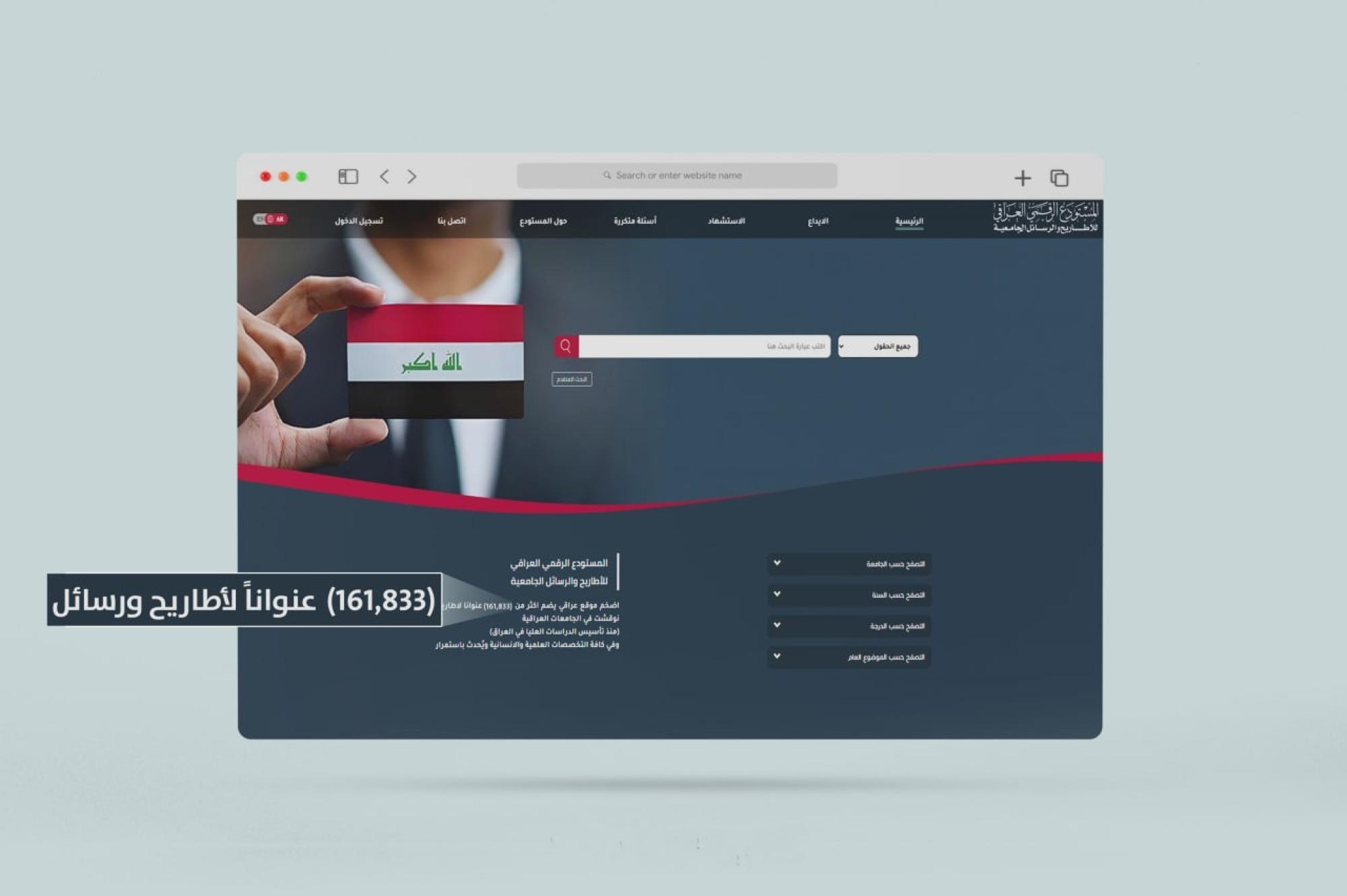 أعلن قسم الشؤون الفكرية والثقافية في العتبة العباسية المقدسة، إدراج نحو 162 ألف رسالة وأطروحة ضمن مشروع المستودع الرقمي العراقي للأطاريح والرسائل الجامعية. ويُعدّ المشروع إحدى المبادرات العلمية المهمّة التي يتبنّاها مركز المعلومات الرقمية التابع للقسم، في إطار جهوده الرامية إلى حفظ النتاج الأكاديمي العراقي وتنظيمه على وَفقِ أحدث النظم التقنية. وقال معاون مدير المركز، السيد صالح الحسناوي: إنّ "المستودع الرقمي يضم 161,833 رسالة وأطروحة جامعية، ويجري تحديثه بشكل مستمر، لمواكبة النشاط العلمي في المؤسّسات التعليمية العراقية". وأضاف أنّ "المستودع يوفّر خدمات معلوماتية متطوّرة للجامعات العراقية المشتركة فيه، وهيآتها التدريسية وطلبتها، فضلًا عن توفير وسائل خزن طويلة الأمد للأطاريح والرسائل الجامعية باستخدام تقنيات حديثة، تضمن حفظها الآمن لمدة لا تقل عن 50 عامًا".